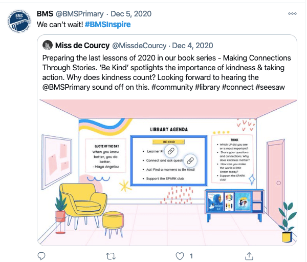 Rituals and routines are part of every learning environment, of every school community; whether it be a morning greeting, check in circle, or roles and responsibilities that are assigned to the class each week. These all form part of a shared classroom culture. In the online space, we saw morning check in circles often replaced with a morning prompt in the chat in MS Teams, a way for everyone to say hello and connect before starting their learning day. Or for the younger grades, a morning video message. I also observed the beauty of new rituals or routines forming – a favourite way to end a call in one of 6th grade classes for example, has now become an embedded ritual for the class to say goodbye!