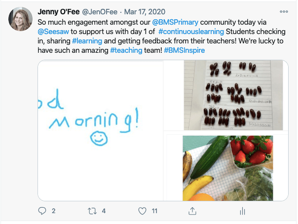 Ensuring learning is purposeful, challenging and relevant for all students became ever more complex in a distance learning world where differentiation strategies and the ease of interaction between teachers, students and peers is more challenging. Finding ways to engage in learning with materials and experiences at home, ensuring learning engagements are open ended and encourage further student led inquiry all can help ensure that learning remains purposeful and relevant for the individual. We had great examples with students carrying out science experiments, building machines, testing theories and recording their experiments as learning evidence.